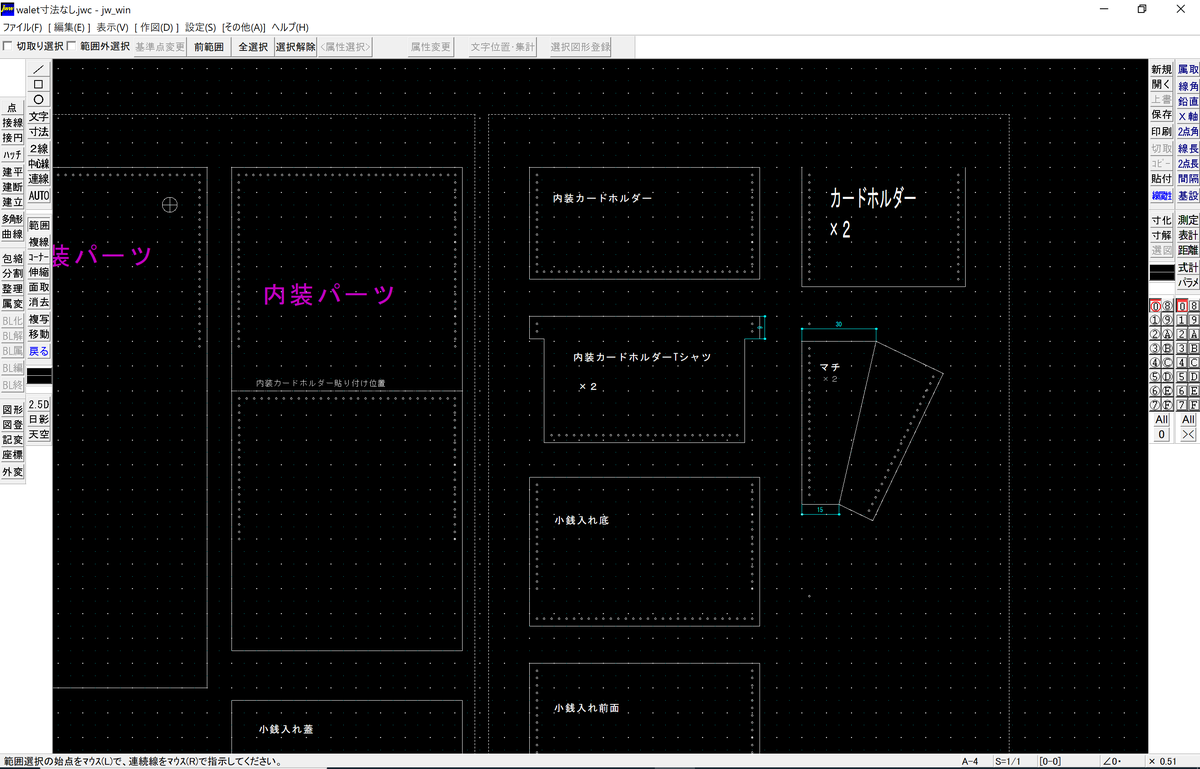 とりあえず新しい財布の型紙はできたので、プリントアウトして試作を作ろうかな