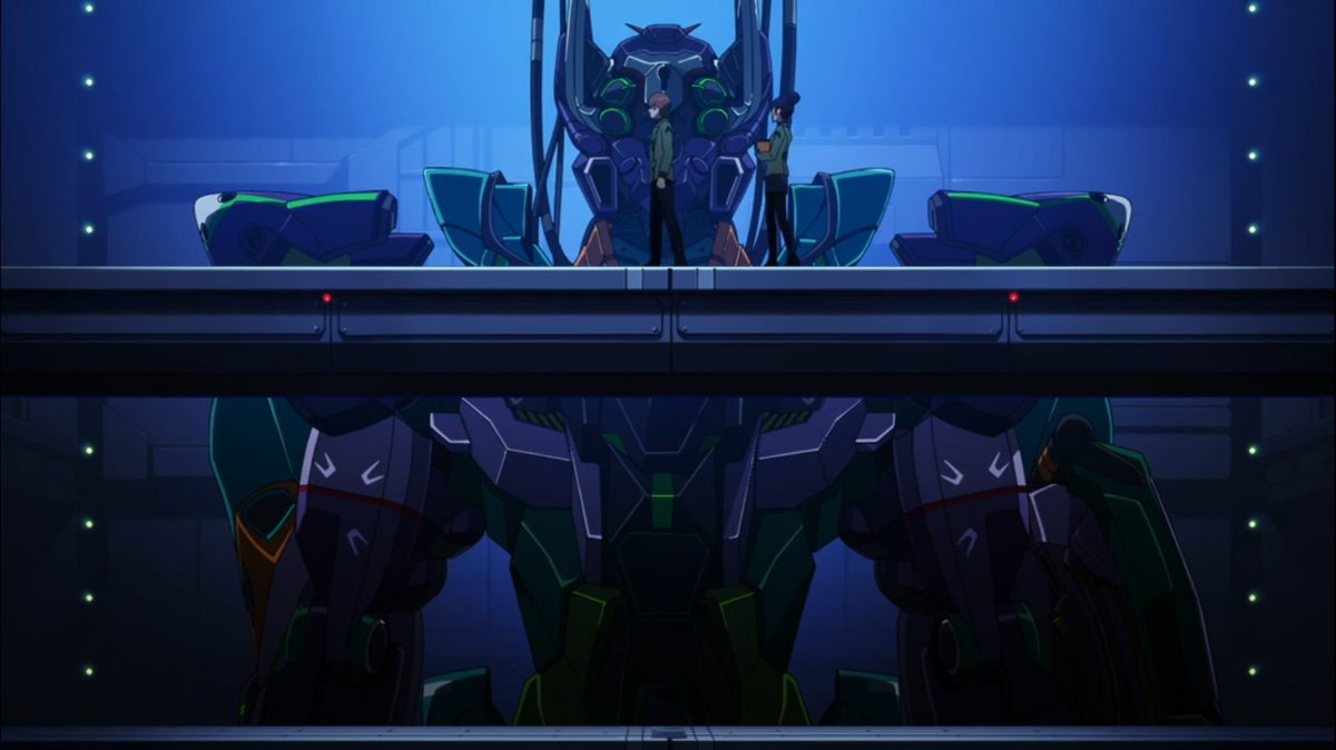 界隈では初号機呼ばわりされているけど、まぁ確かに紫メインに緑、赤の差し色は完全に初号機。何よりもこの画角が初登場の初号機と同じなんよなぁ・・・