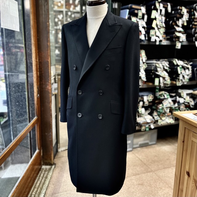 それが、年度末に深野羅紗店さんで仕込んでいた、漆黒のダブルチェスターフィールドコートです。