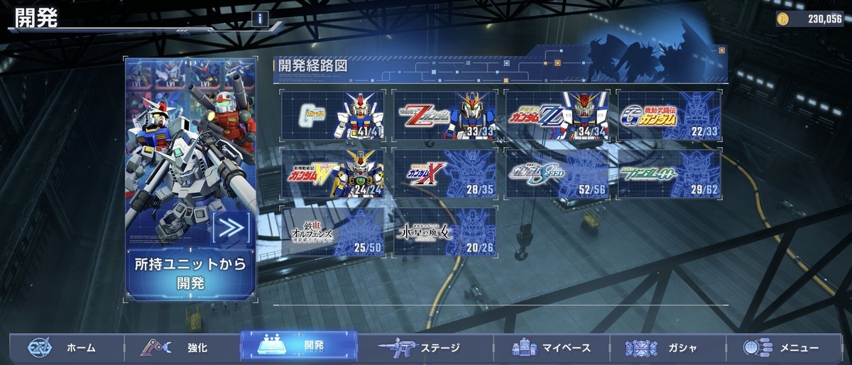 私のコレクター魂に火がついてしまい、残す期待もGガンダムで1体のみ、これも開発素材さへたまればすぐに開放可能で本当にあと少し