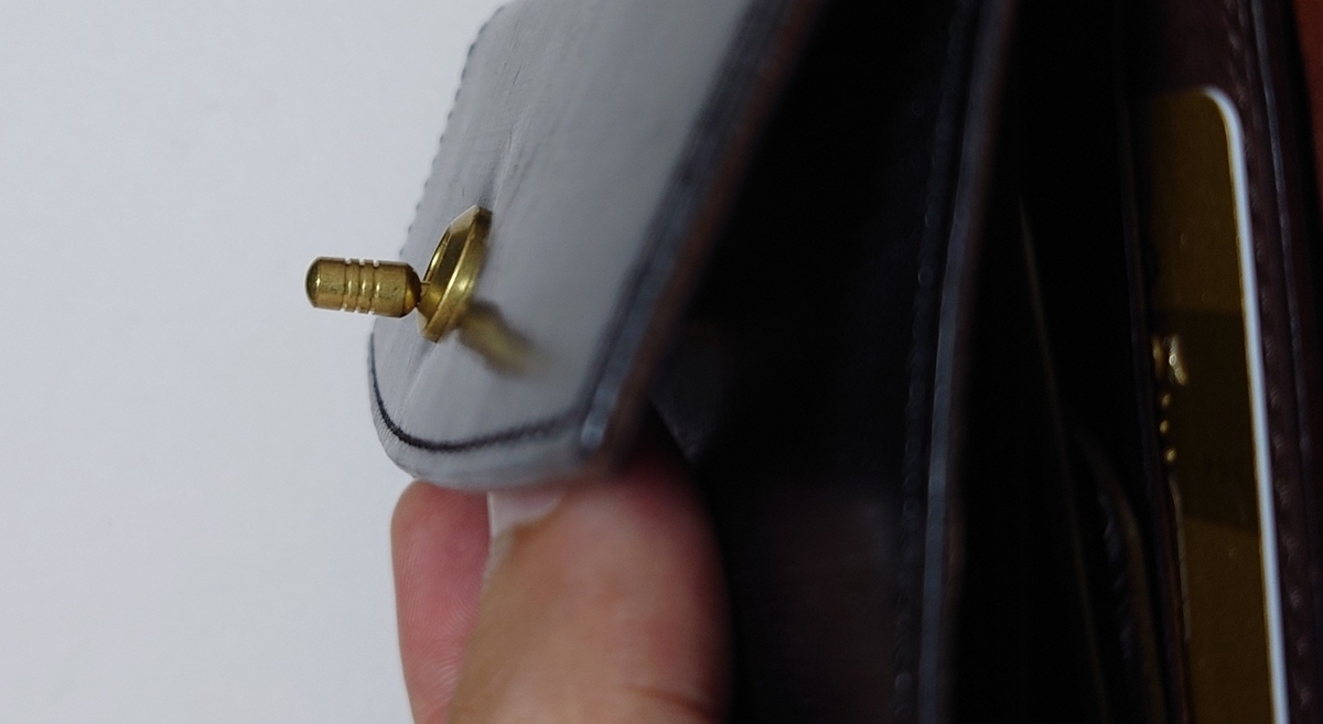 このホックの機構で蓋を留めているので、横から見るとこんな感じ
