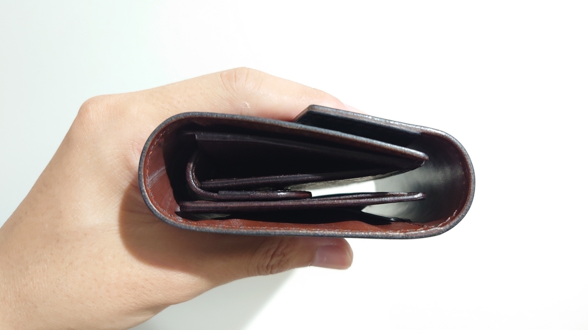 強い弾力のある固い革を外装に使ったほうが、この財布は活きる気がします