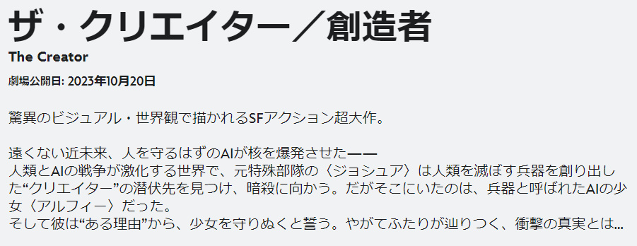最後に映画でも見て帰ろうかと、気になっていたザ・クリエイターを見に行きました