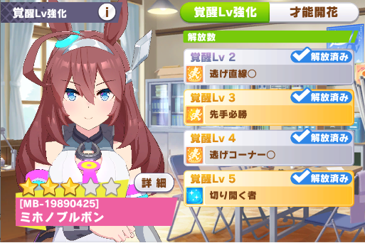 ぶっちゃけると、奥さんの名前が入っているからという理由でミホノブルボン覚醒5まで上げて後悔しているっていうだけの話なんですけれども
