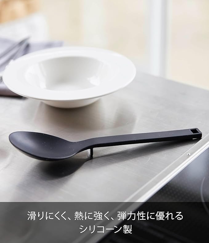 調理用の大きなスプーン、いろいろアイテムはあると思うんですが、ちょっとした機能追加で非常に使い勝手がよくなるのを実感します。